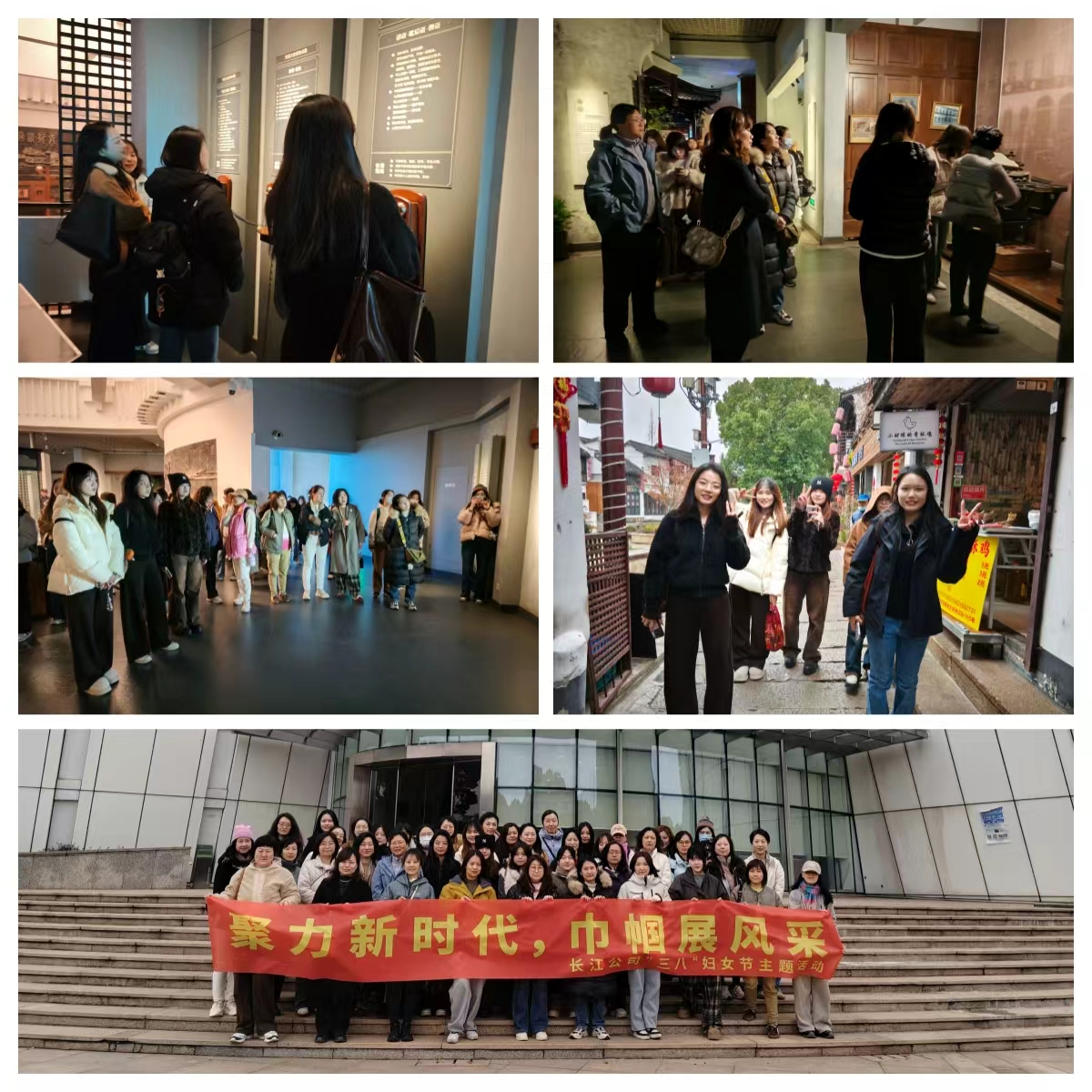 上午,大家首先走进青浦区博物馆。展厅里静谧安然,女职工们放慢脚步,沿着展线细细浏览。从史前遗存到水乡民俗,一件件文物无声诉说着上海的古文明脉络。大家时而驻足端详,时而轻声交流观展心得,在沉浸式的参观中感受历史的厚度与文化的滋养。午后,队伍移步朱家角古镇。青石板路蜿蜒向前,小桥流水在眼前铺展。大家三五成群,或沿河漫步,或凭栏远眺,放慢脚步看游船穿行,尝几口特色小吃,用镜头定格彼此的笑脸。平日里忙碌在工位前的她们,此刻享受的是暖阳、微风和同行的欢语。傍晚,全员平安返程,活动圆满收官。